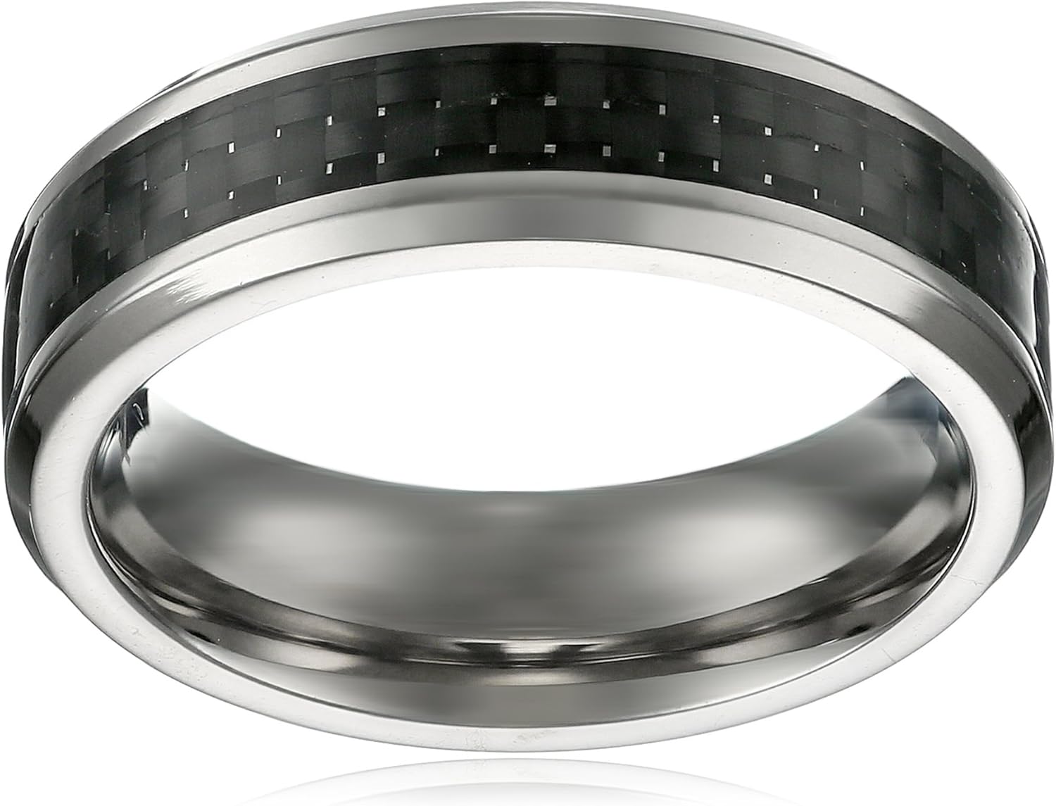 Black ceramic carbide 8 mm carbon fiber inlay wedding band. Striking but simple, light yet incredibly strong, our carbon ring is 100 percent forged carbon fiber. Since most of our rings are wedding bands, which are meant to be worn for a whole lifetime, making sure that it is strong without being heavy is extremely important. We carry a ton of different styles to choose from and prices start under $100.