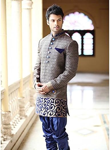 Images. What makes these men's indian wedding suits an ideal choice is that they are designed from luxurious fabrics, just like the suit and adorned with embellishments or embroidery at strategic points like the collar and the placket. Today this blog on indian wedding dresses for men is being shared to break all the misconceptions that people have regarding the male wedding fashion.