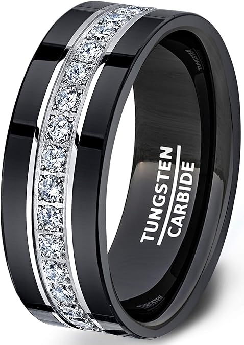 Elgnt Designs 8mm Silver Black Brushed Tungsten Mens Wedding Ring Band Mens Wedding Band Engagement Ring Promise Ring Size Amazon Com from images-na.ssl-images-amazon.com