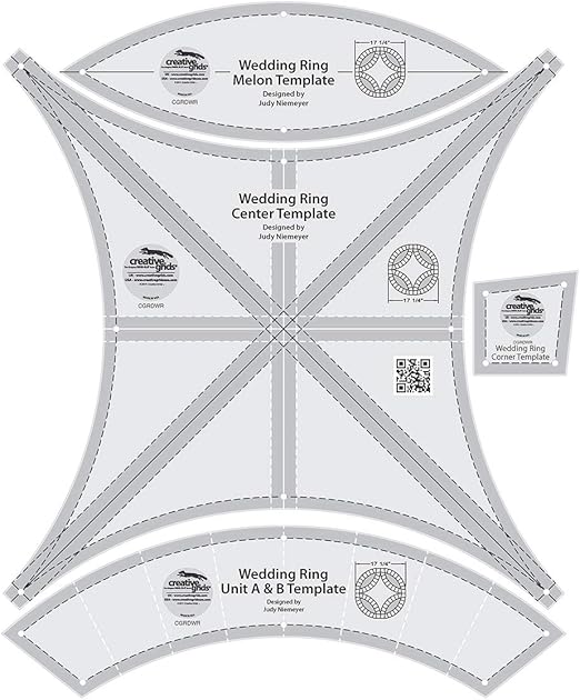 Mark the fabric through the holes in the. They vary in the size and shape of the pieces that go around the melon shaped piece. This double wedding ring four piece template set, designed by judy niemeyer, was designed to work with her double wedding ring patterns. A quilt in the double wedding ring pattern.