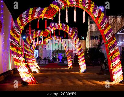 Indian wedding decorations reception decorations wedding themes event decor flower decorations wedding designs wedding entrance weddings, indian wedding planning online. Most of the wedding hall entrance decorations are with flowers but a lot can be done with fabrics as well. The two flowers that have been used are commonly seen in all weddings and are not that expensive.