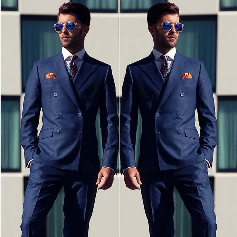 Download Wedding Navy Blue Double Breasted Suit Images. New design double breasted man suits 10 buttons groom suit navy blue dinner suit peaked lapel wedding suits(jacket+pants) navy double breasted suit clearance. Mens double breasted navy blue check classic gatsby vintage tailored fit suit.